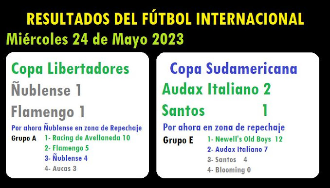 Resultados del fútbol internacional. Miércoles 24 de Mayo 2023